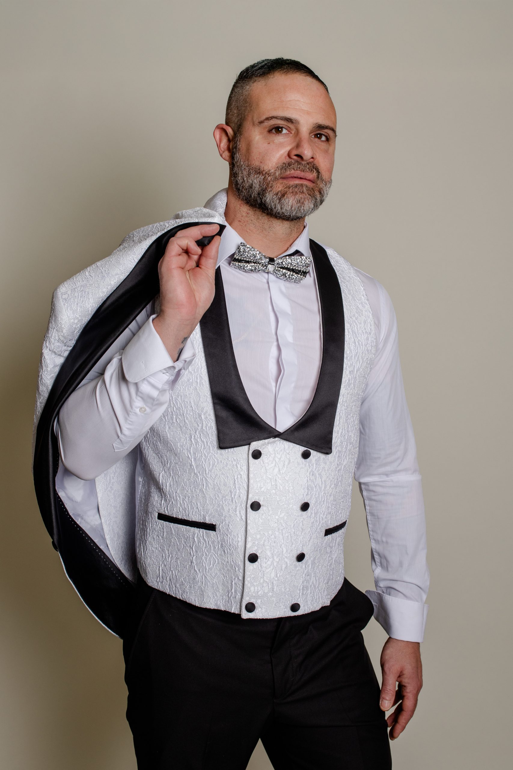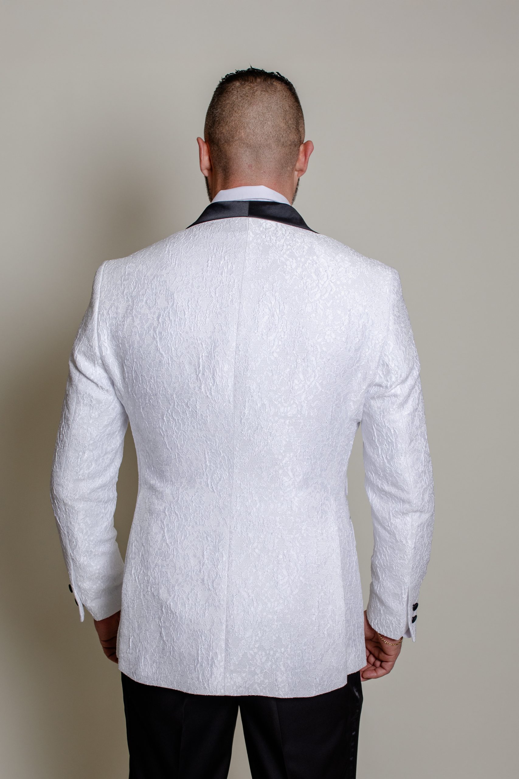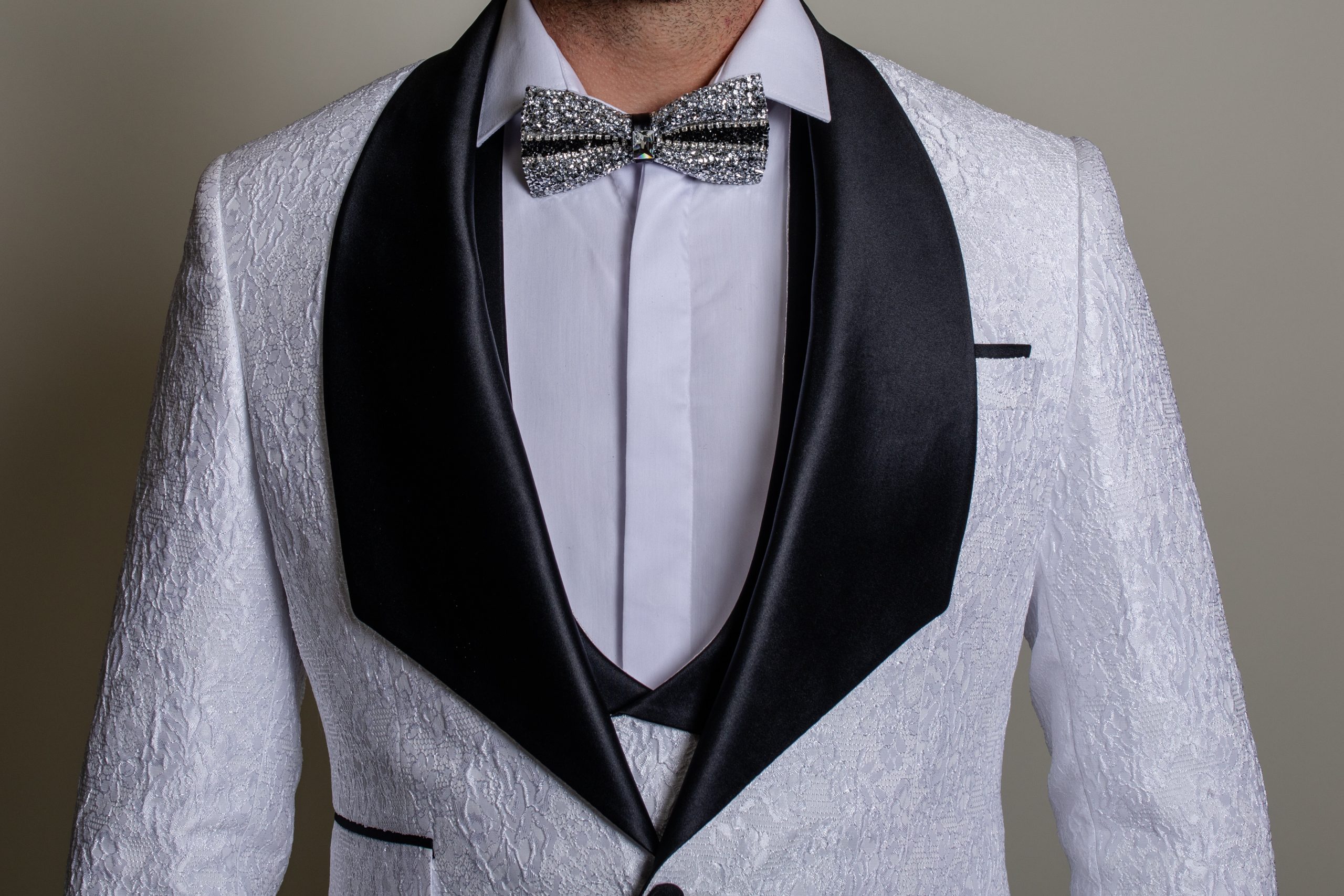 L’EDEN est bien plus qu’un costume, c’est un déclaration d’élégance et d’originalité. Le costume 3 pièces en dentelle blanche, allie luxe, raffinement et modernité.
